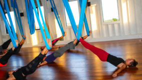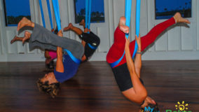 Full disclosure: I envisioned myself gracefully, slinking into various yoga poses without much pause. I’ve taken yoga classes, and even watched videos showing how to effortlessly get on the fabric swings. I would be bending, squatting, flipping upside down elegantly…ahh, yes, I could do this.
