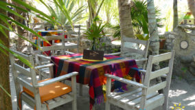 Bartender Javier quickly prepares two sangrias, one red and one white, and we sip on the potent drinks while Chefs Hugo, Mario and Miguela work on our surprise appetizers. We are seated on the beachfront area of the restaurant, yet we feel as though we are in our own private oasis, surrounded by native trees and shrubs that give us natural coverage. Pretty soon, we see our dishes coming, and what delights they contained.