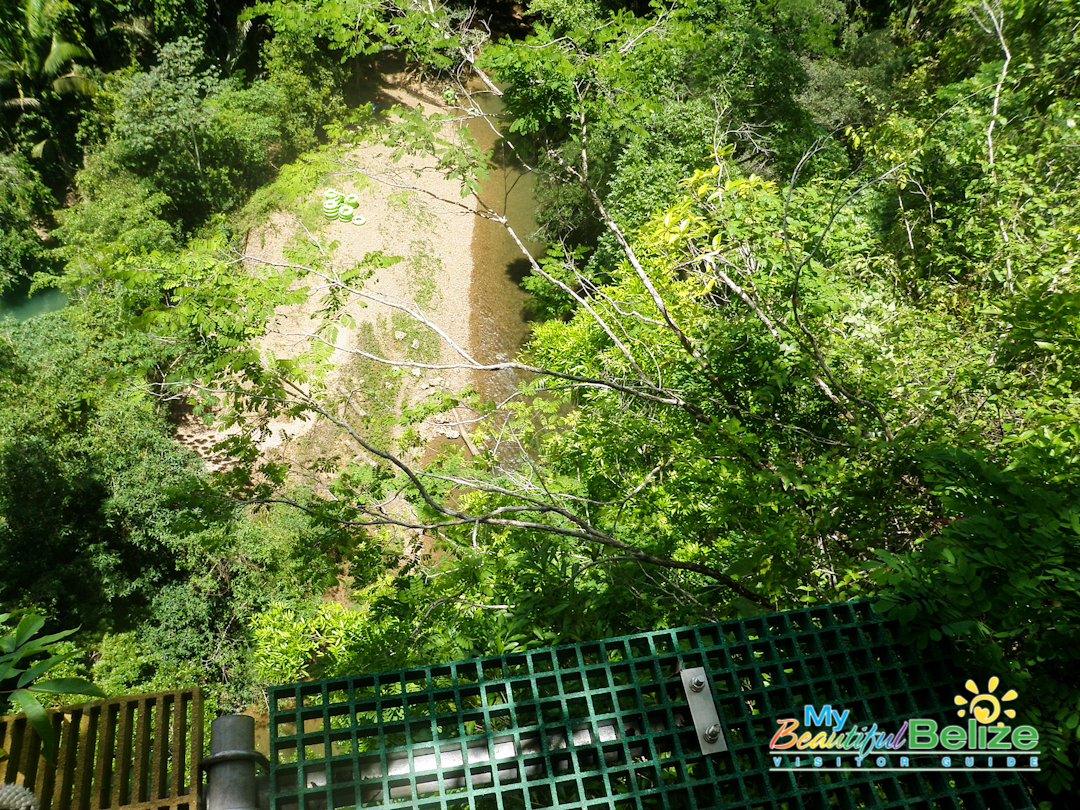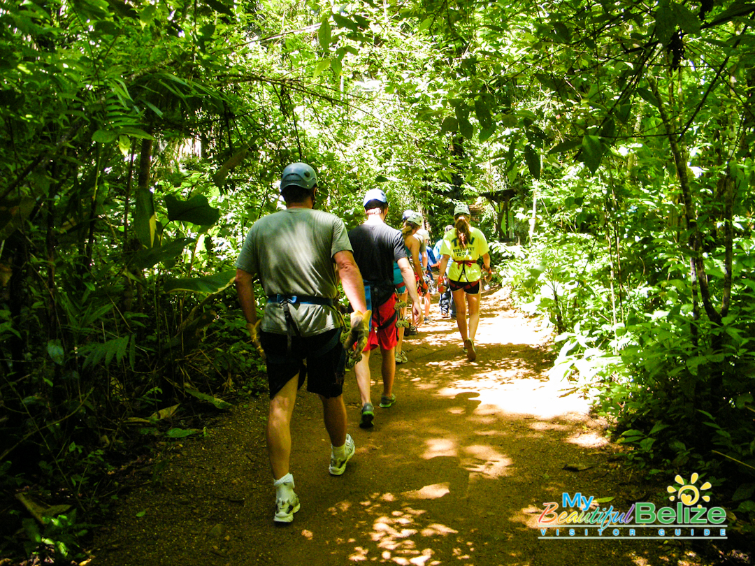 Our group of ten thrill seekers could not wait to tackle adventures the jungle had to offer. The first taste of said adventure was bumping along the winding dusty roads on route to the much the anticipated Jaguar Paw Eco Park. After the shuttle entered the gates of the eco- park to its designated parking slot, we hopped out , following Edgar into Chukka Tours’ main office. There we got the full run-down of the activities that lay ahead. We were up for a long day of hiking, zip-lining, rappelling and cave tubing, and boy was I thrilled! Before tagging along the trail, we sprayed on ample repellent-(which I would advise any jungle enthusiast to have plenty of) then made our way up the trail to the first zip- line (there are seven lines to try out). Prior to being harnessed to the lines, we got a briefing by the guides who showed us how it’s done right. Before we knew it, we were Tarzan and Jane (fully clothed of course!) flying through the lush jungle canopy, getting a bird’s eye view of the pristine land which has been preserved since the days of the Maya.