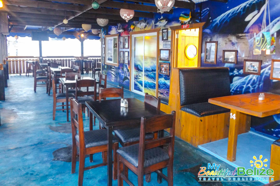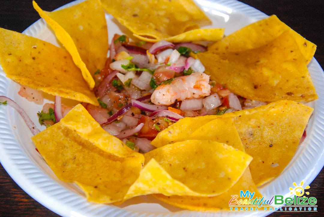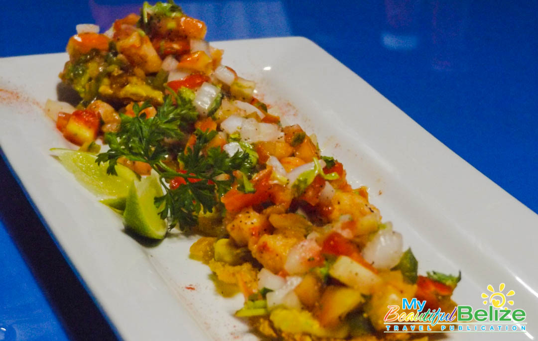 The menu includes appetizers like traditional ceviches of shrimp, octopus, mymula (Horse Conch), conch and lobster; Anglers Fishing Samplers, nachos, and tostones among others. Soups and salads are also available. Some of the choices included in its main menu include Anglers Quesadillas, Seafood Wrap, Belizean Tacos, Anglers Surf and Turf, Seafood Burger, Fish Sandwiches, Fajitas, and even Fettucine Tomato and Basil for pasta lovers. Anglers also offers chicken and steak.