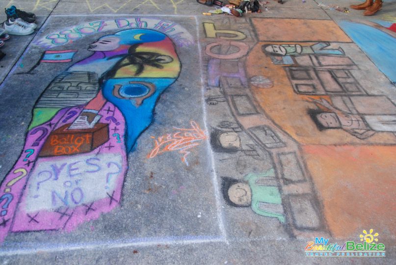 One of the most popular activities is the ‘Side Walk Chalk’ competition that showcases the talent of Belizean artists. This year’s participants explored their creativity with patriotic and informative pieces reflecting the theme ‘Your Appointment with History: April 10, 2019.’ On this date, Belizeans will be asked to participate in a national referendum on whether to settle the Guatemalan territorial claim to Belize at the International Court of Justice.