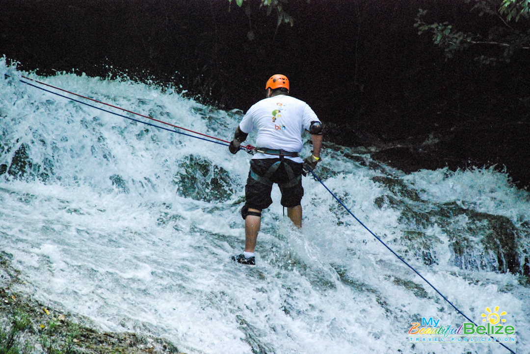 Through the Belize Tourism Board (BTB), I, along with a group of media colleagues spent a weekend exploring Hopkins and trying new and exciting adventures. Out of the 19 of us, 9 decided to brave the falls. I watched as everyone calmly took to the ropes and began their slow descent. Our guides Victor, Victor and Israel were more than clear with the instructions, but even they had seen enough people panic at the first step and forget the rules completely.