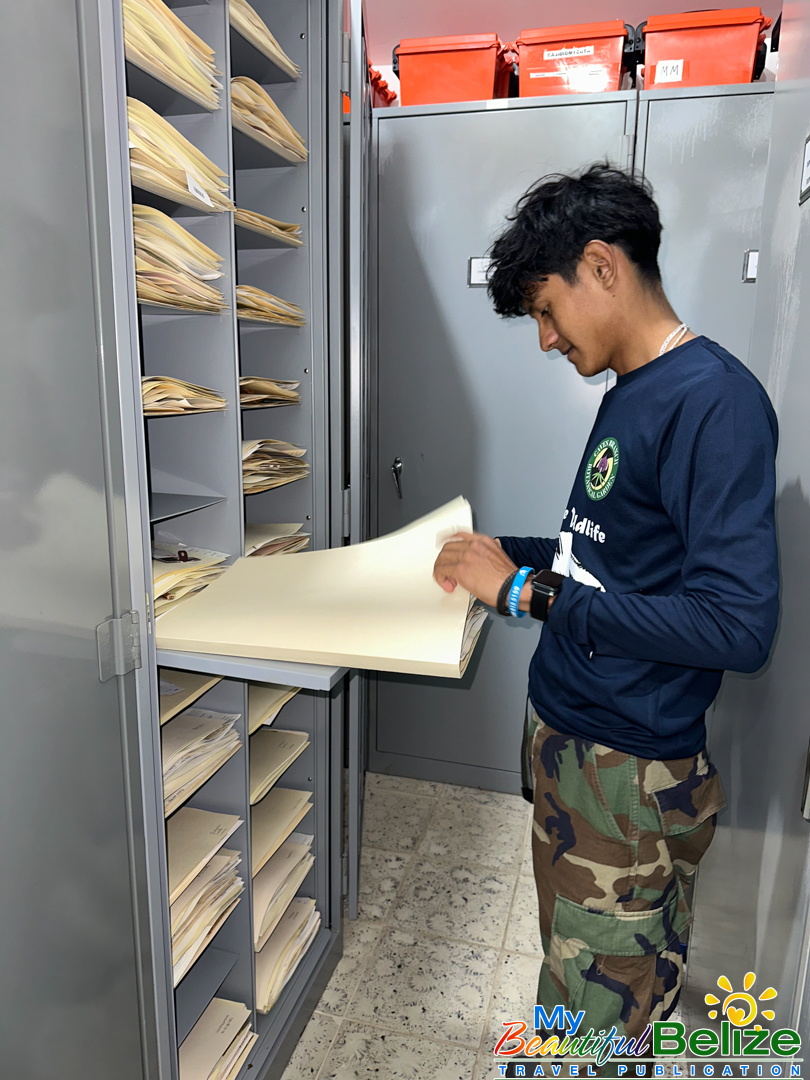 “In the boxes we have approximately 9,000 specimens, and in the cabinets we have roughly 12,000,” Gregorio explained. The collection has endured a difficult history. During its time in Belize City, the collection suffered significant setbacks when a fire damaged some specimens. Despite those losses, much of the collection survived and continues to be preserved today.