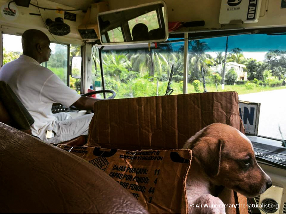A puppy on the bus!! Ali enjoys getting around Belize via bus.