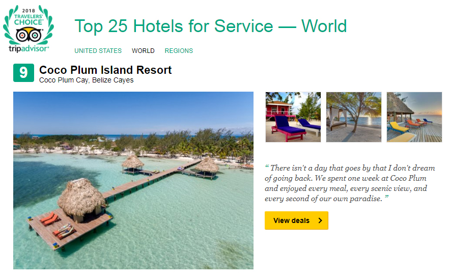 The results are in, and Belize is once again on TripAdvisor’s 2018 Awards List! Making both the World and Central American categories are resorts like Coco Plum Island Resort, the Phoenix Resort and Vanilla Hills Lodge. The list is determined based on the millions of reviews and opinions collected throughout the year from TripAdvisor travelers worldwide. A travel planning and booking site, TripAdvisor’s Traveler’s Choice Awards have been handed out for 16 years, having recognized 8,095 properties in 94 countries and eight regions around the world.