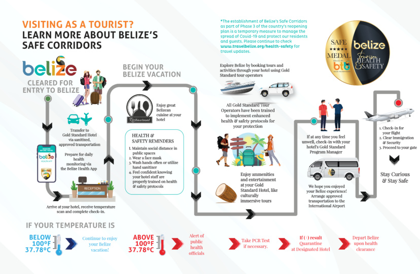 During this phase of reopening, the Belize Tourism Board has implement the Tourism Safety Corridor Process Flow Guidelines which will allow guests to have a safe and enjoyable experience while in Belize. From arrival to departure, each step details the guests’ journey as they embark on their Belize vacation.