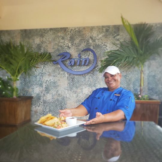 A veteran in the kitchen, it seems everyone knows Ms. Sherlette. If you haven’t tasted her cooking, then you have probably seen her dancing during San Pedro’s Carnaval or Independence Day Parades. Sherlette ia a beloved community member and also a great chef. For over twenty years, Sherlette has delighted visitors and locals with her tasty cuisine. Today, she holds the position of Deputy Chef at Rain Restaurant and Rooftop Terrace, and is in charge of the most important meal of the day, breakfast!