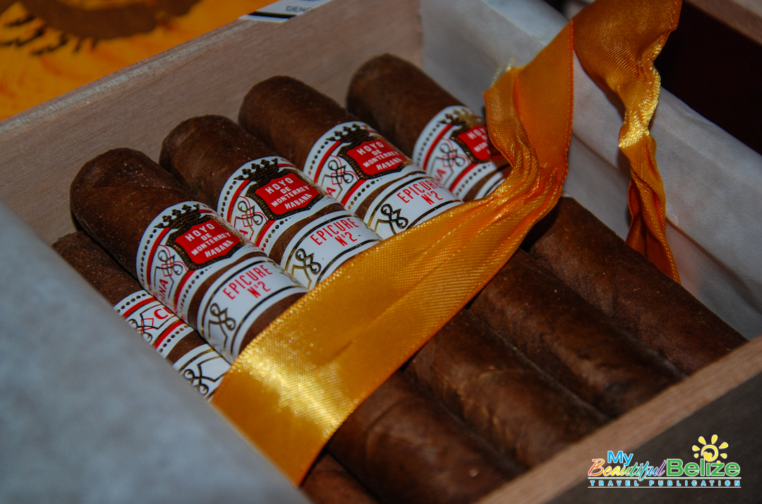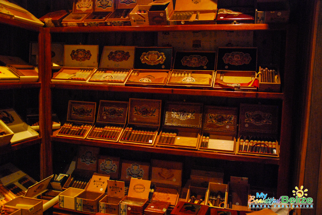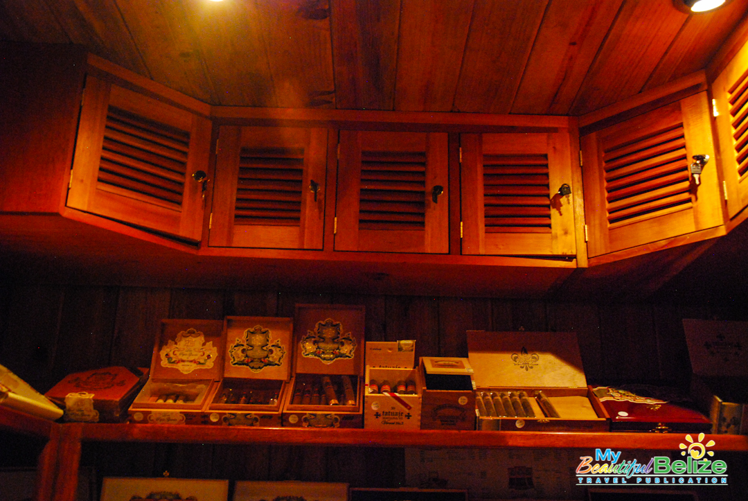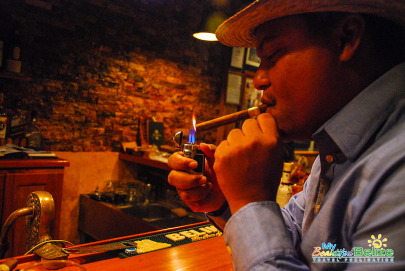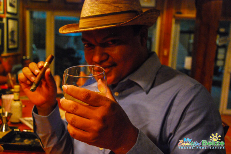 At the sight of so many boxes of cigars, I felt like a little boy in a candy shop, tempted to sample them all! With Utrera’s assistance, I chose one, and with my decision made it was time to head to the well-stocked bar, where coffee, whiskies, wines, and Belizean rums awaited to accompany my tobacco.