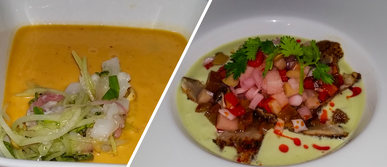 The hubby’s chilled red curry mango soup was just as delicious! The initial heat came as quite a surprise, but he was pleased when it dissipated almost immediately, and was left with the sweet creaminess of mango. Each bite of soup came with the crunch of peanuts and a bite of lobster and cho-cho, and we found ourselves eating every last morsel; eager for our entrees.