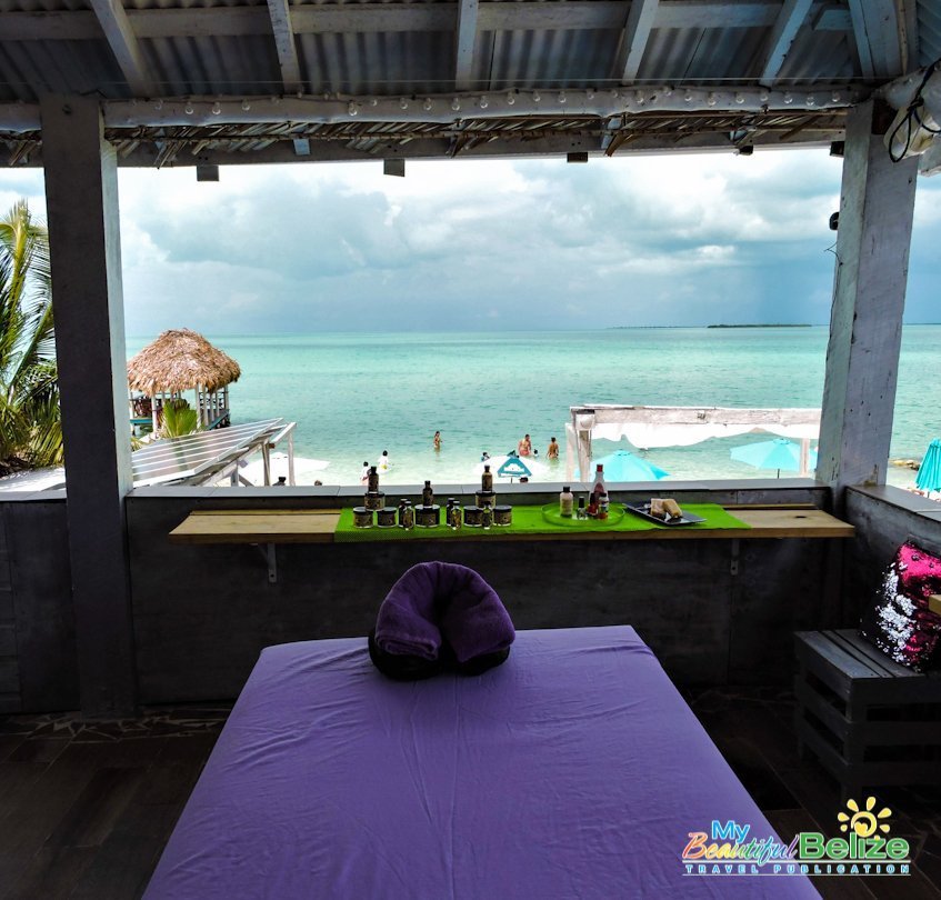 Situated on the second floor above their bar and restaurant, the spa is an open area overlooking the gorgeous expanse of azure waters and enjoys a cool and refreshing breeze. In the front area, guests can enjoy a casual spa experience where the space is less private than the usual studio spa you may expect, and lively music rises from the bar. It’s a setting where you’ll want to keep your bathing suit on while skilled therapists massage your worries away and the ocean breeze soothes your senses.
