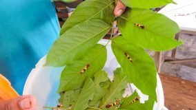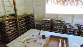 Last, but not least on the tour is the room where leaves laden with butterfly eggs that they have collected from the pavilion gestate in separate enclosures until they hatch into baby caterpillars, grow and ultimately form cocoons. Some of the eggs are even exported out of the country to other butterfly centers around the globe, while some of the cocoons end up back in the pavilion where the cycle repeats itself. It’s a fun and fascinating process to learn about and so interesting!