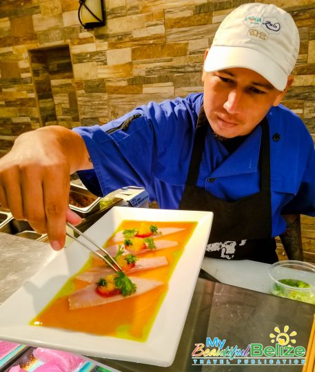 Now after eight years in the culinary world, Samuel has earned the title of Executive Chef for both Rain Restaurant and Rooftop Terrace as well as Aqua Seafood/Sushi Restaurant and Steakhouse. “I am proud of what I have achieved, and hope to encourage all aspiring Belizean chefs to work towards their goals and never give up.” His skills as a chef have flourished, and now guests can enjoy flavorful creations by Chef Samuel and his creative Belizean team.