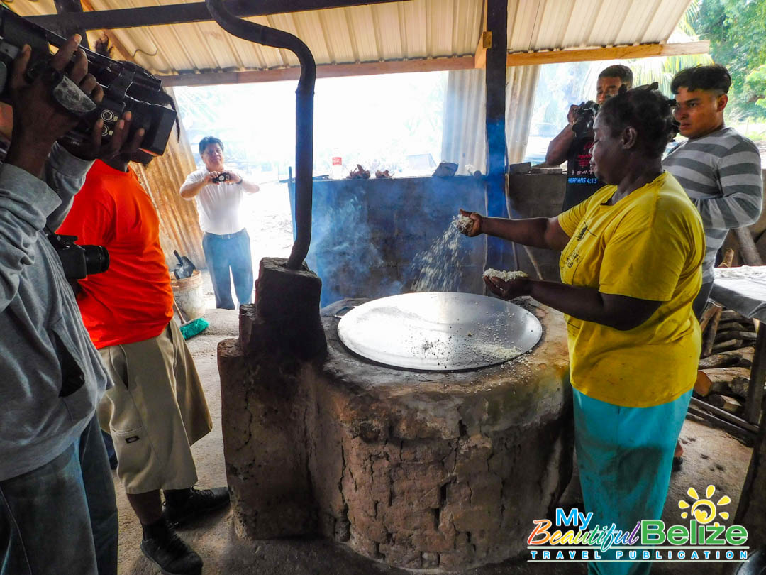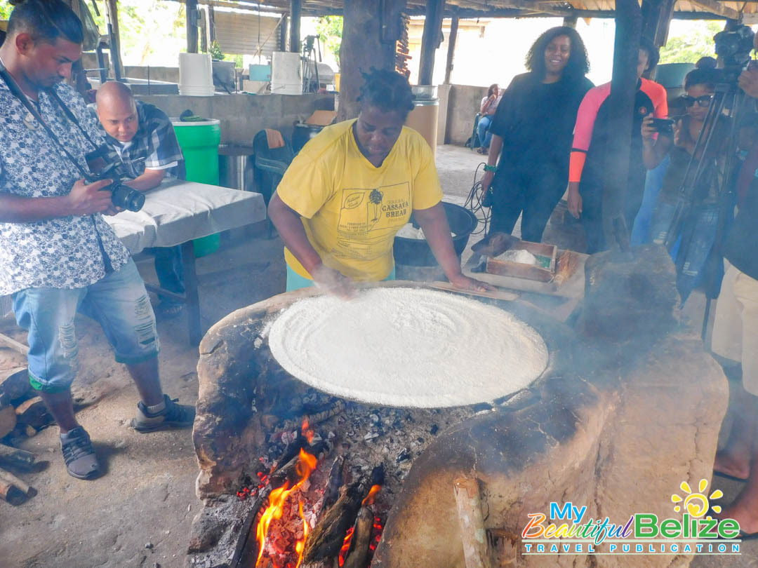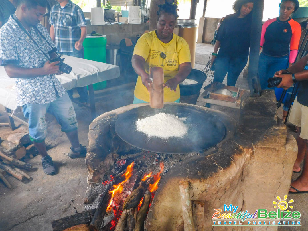My Beautiful Belize recently had the unique opportunity to visit Sabal’s Cassava Farm as part of the 2019 Belize Tourism Board media familiarization trip on the southeast coast of Belize. Located at mile three on the Hummingbird Highway, right outside of Dangriga Town, this family-owned business has been operating since 1987 and produces cassava bread, starch, juice, and other deliciousness. The farm’s premier product – the cassava – is an essential part of Garifuna culinary culture, and the Sabals take it from the root to the dinner table. The best part is that they open that process to visitors who can tour the farm and observe the processing of the root vegetable, and the actual making of cassava bread, “Ereba” in the Garifuna language.