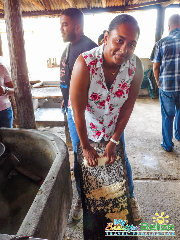 My Beautiful Belize recently had the unique opportunity to visit Sabal’s Cassava Farm as part of the 2019 Belize Tourism Board media familiarization trip on the southeast coast of Belize. Located at mile three on the Hummingbird Highway, right outside of Dangriga Town, this family-owned business has been operating since 1987 and produces cassava bread, starch, juice, and other deliciousness. The farm’s premier product – the cassava – is an essential part of Garifuna culinary culture, and the Sabals take it from the root to the dinner table. The best part is that they open that process to visitors who can tour the farm and observe the processing of the root vegetable, and the actual making of cassava bread, “Ereba” in the Garifuna language.