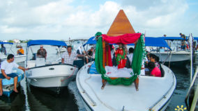 Perhaps one of the most unique processions in the entire country is that of Saint Peter on Ambergris Caye. The town’s statue of Saint Peter is mounted on a boat adorned with flowers at the municipal dock. The fishing boat with Saint Peter then leads a boat procession northwards, to the bridge and ending at the El Embarcadero (docking area) where fishermen clean their catch of the day. After the boat procession, the town’s priest blesses each boat. Saint Peter is then returned, during a street procession, back to church. The religious celebration concludes with an open air mass for the entire island outside the church on the evening of June 29th.