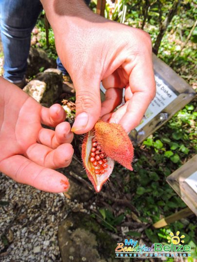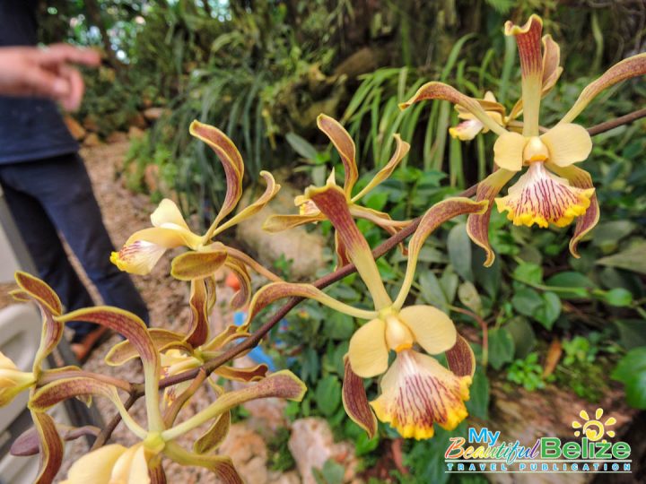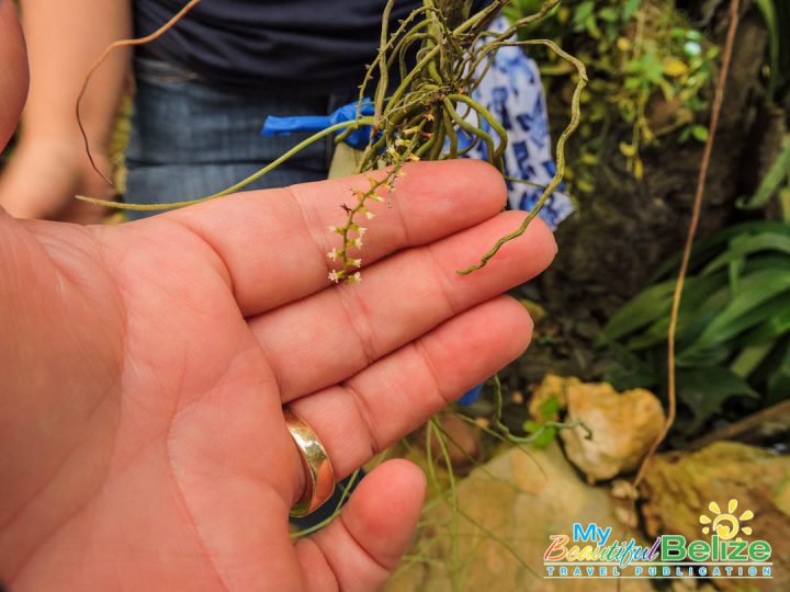 Founded in 2008 by the one and only Ella Baron, who recently had a plant named after her – Alsobia baroniae in recognition of her efforts in conservation of Belizean flora, this garden boasts the largest collection of native epiphytes, such as orchids and bromeliads (air plants) in the country. Carefully procured by Baron and the Caves Branch Jungle Lodge team, the vast collection also includes native plants, ranging from produce bearing ones such as coconuts, coffee, pineapple, bananas and cacao to spices like lemongrass, and Achiote, which produces the red seeds used in our popular recado spice.