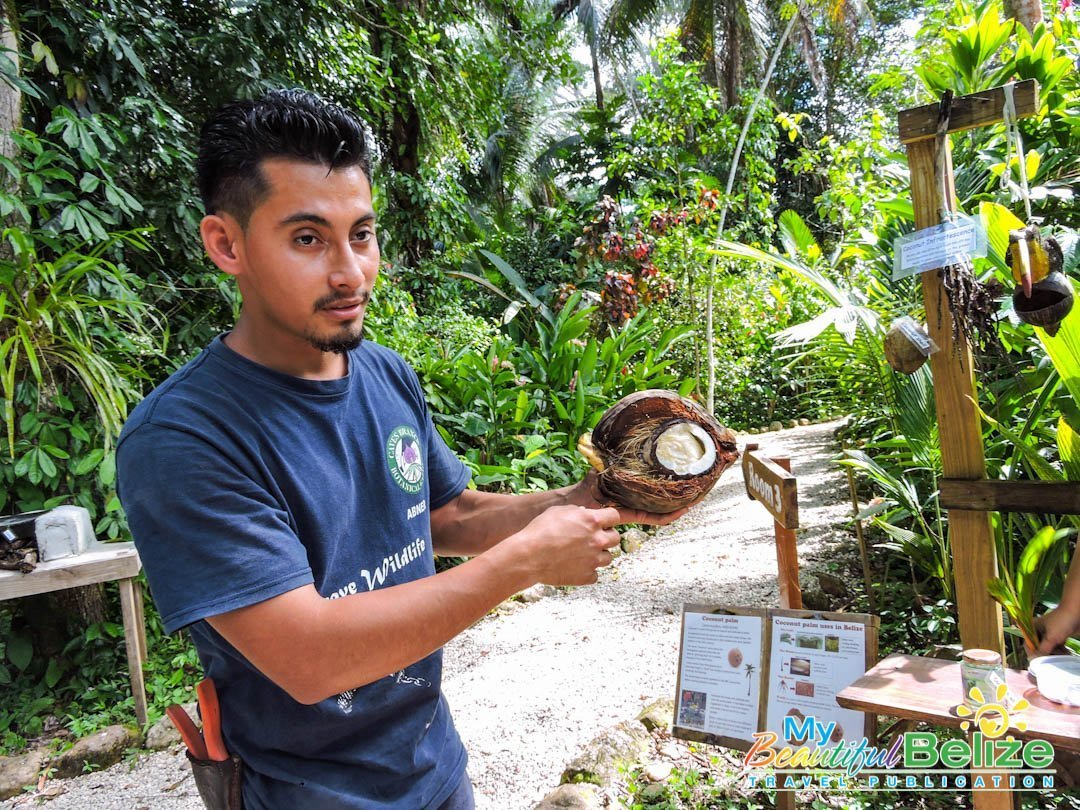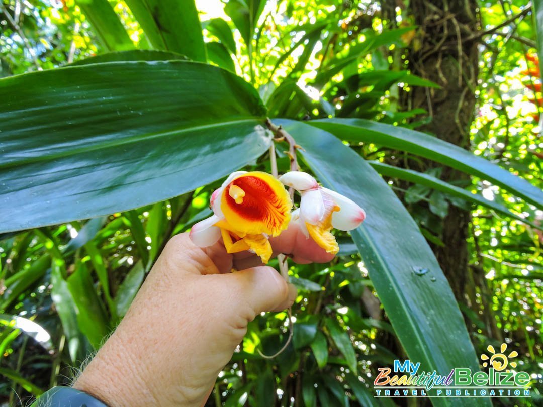 Founded in 2008 by the one and only Ella Baron, who recently had a plant named after her – Alsobia baroniae in recognition of her efforts in conservation of Belizean flora, this garden boasts the largest collection of native epiphytes, such as orchids and bromeliads (air plants) in the country. Carefully procured by Baron and the Caves Branch Jungle Lodge team, the vast collection also includes native plants, ranging from produce bearing ones such as coconuts, coffee, pineapple, bananas and cacao to spices like lemongrass, and Achiote, which produces the red seeds used in our popular recado spice.
