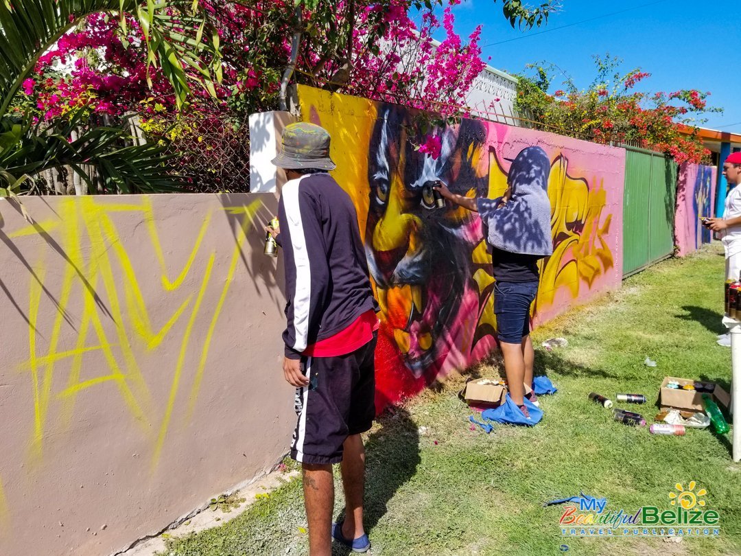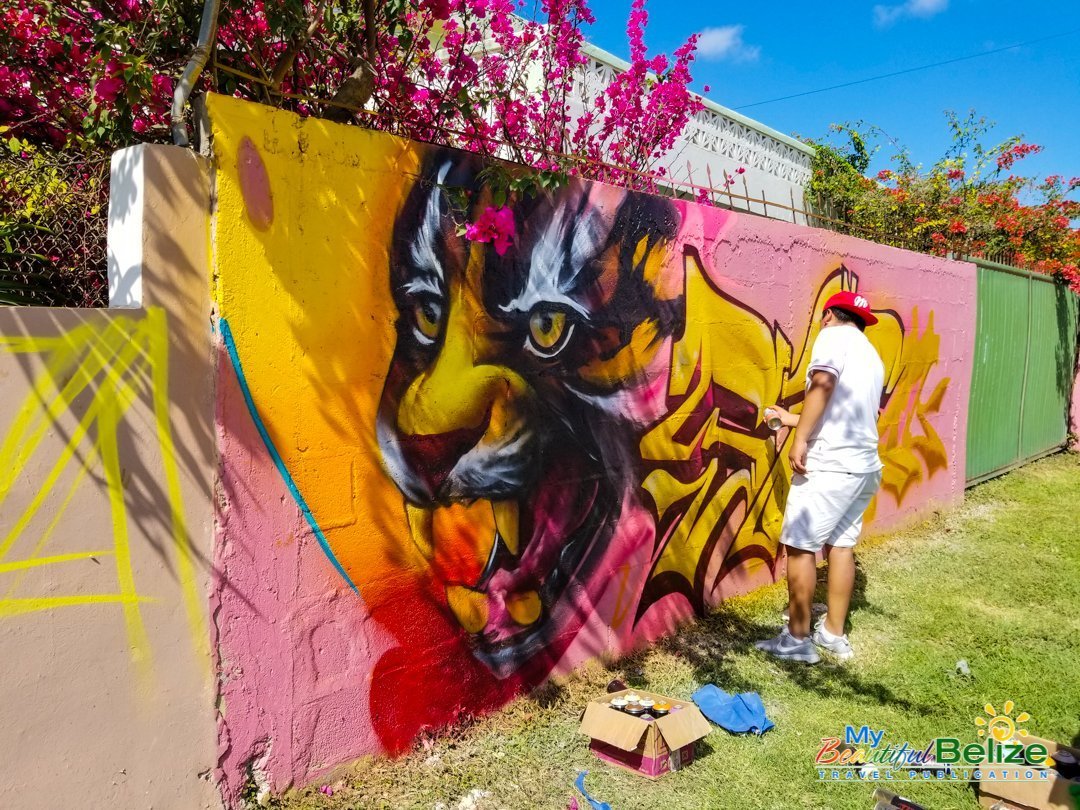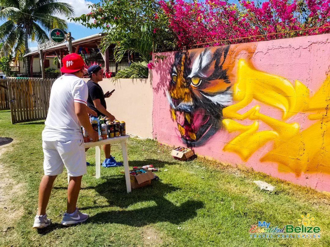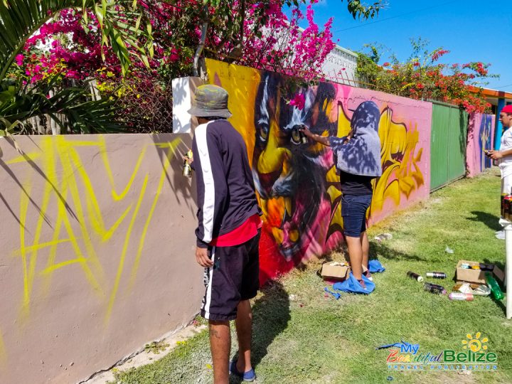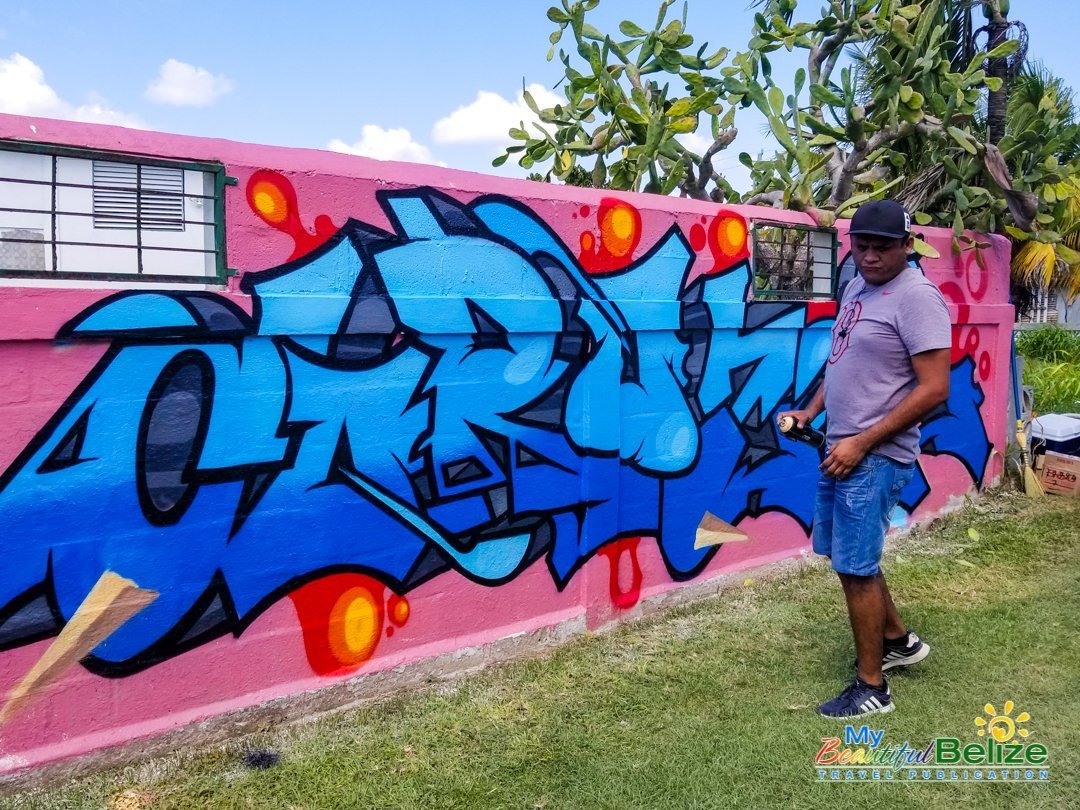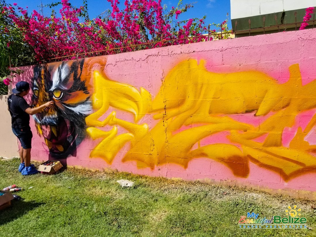 After the success of the 2019 Graffiti Festival, organizers at the Corozal House of Culture decided to continue this beautiful, artsy and fun tradition. Corozal itself has much beauty to boast about, and it is fast becoming known as one of the most colorful towns in Belize. Businesses along the Bay happily lent their wall space, and volunteers even joined forces to prep and condition them beforehand. Do you ever remember wanting to take your colorful crayons and markers to the living room walls as a child? These lucky artists get to live out those dreams!