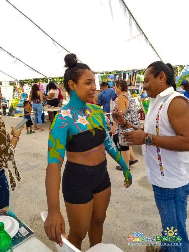 Under a swathe of tents, vendors and other artists had their works on display. Paintings in a variety of styles by different artists (including body painting), jewelry, homemade ice cream, coconut soaps and oils, handmade reusable bags and purses, and educational booths – there was something for every age and interest. It was a true community effort, one that brought art in all its forms to life on a bright Sunday in Corozal. Along the bay, sailboats whizzed past, sailors taking guests out for a fun ride to enjoy the art of sailing too.