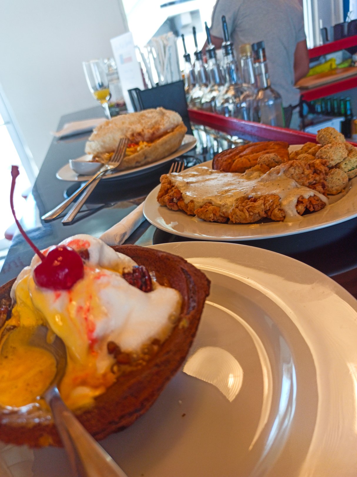 But I have got to give props to Island Wonder’s chicken and dumplings. This classic stew took my taste buds on a fantastic ride down memory lane. Served with garlic bread, you just won’t be able to stop eating once you start. Did I mention the mimosas I had? Those were good too!