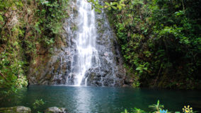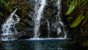 Popular with honeymooners and the romantic types, this waterfall can be roped-off ‘reserved’ for a special morning or afternoon of utter leisure and privacy. Seeing as Tamara and I were neither honeymooning nor romantically involved, we decided that the perfect reason to reserve the falls was so we could drink our wine in peace! Marvin had revealed the contents of the cooler at the top of our hiking trail, and we couldn’t wait to make it to the bottom and toast to our accomplishment. Going down was fantastic, rope rails were there to help in some trickier spots, but overall, it was a breeze to walk downhill. The closer we got to the bottom, the cooler the air got, and the louder the sound of roaring water became. Soon, we could see the splashing falls, a gazebo built just a little way from the base of its pool, perfectly situated to enjoy the wonder of nature before us.