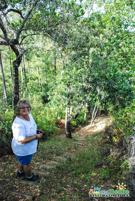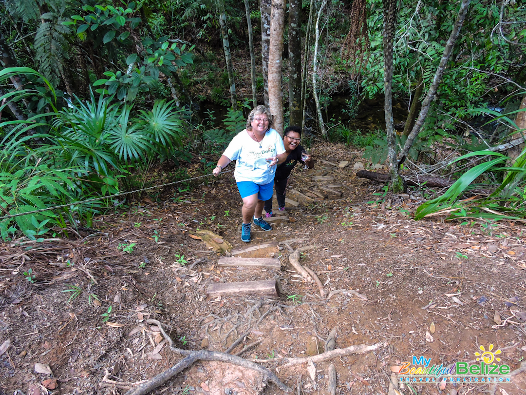 Our first hike seemed gentle enough; in fact, to start with, we clambered into a double-cab truck to cover most of the ground. Tamara was thrilled to have someone else driving for a change after she had spent nearly four hours behind the wheel from Belize City to Hidden Valley. Marvin told us of the variety of birds that migrate to the reserve, and we admired his expertise as he began pointing out birds here and there. The drive was at times bumpy, but I looked out to the roadsides and saw all manner of trail markers, one of which was for the Butterfly Falls Trail. Marvin told us we would save that waterfall for the next day, but what he wanted us to experience was one called the Secret Falls.