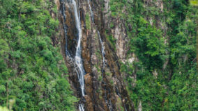 Once we crossed a tiny bridge that seemed fit for a fairy tale, Marvin smiled and said yes, we’re almost there now. The temperature was different, and we strained to hear a deep roar. One more tricky climb and descent, and then the air practically buffeted us around. A small cascade set us up for the grand finale, the rushing waters a prelude to the fantastic 150 feet of rushing, roaring waters ahead.