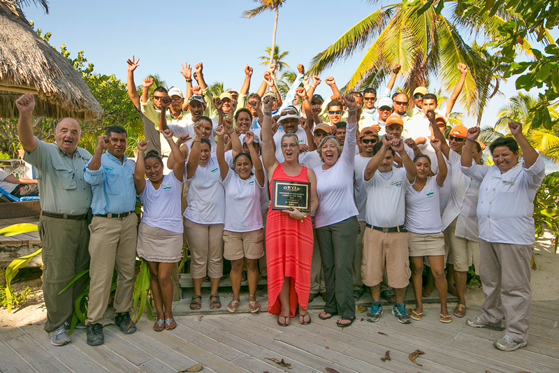 Alissa Flota, CEO of El Pescador Lodge in Belize, was presented with the award for International Lodge of the Year by David Perkins, Executive Vice Chairman of Orvis, at the Orvis Rendevous event in Missoula,Montana on Saturday, April 20.