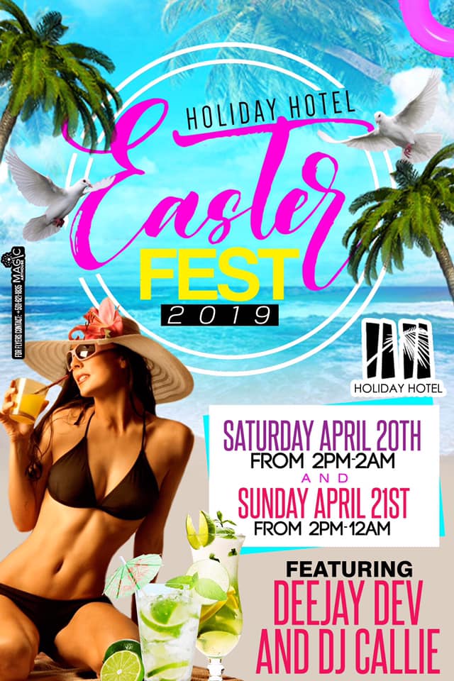 This event has passed. 2019 Easter Fest at Holiday Hotel! April 20, 2019 @ 2:00 pm - April 21, 2019 @ 2:00 am « All Events Pinterest Twitter Facebook Pinterest Twitter Facebook Add to calendar Google Calendar iCalendar Outlook 365 Outlook Live Details Start: April 20, 2019 @ 2:00 pm End: April 21, 2019 @ 2:00 am Event Category: Entertainment Venue Holiday Hotel Barrier Reef Drive San Pedro Town, Belize District 501 Belize + Google Map Phone 226-2014 View Venue Website Event Navigation « Thursday Trivia at the Truck Stop Belize Rewind by Jankunu Productionz heads to San Pedro Town! » Read our previous issue Yes, we've been there, done that, and even gone back for more in some cases! Read our past issues and see why we can't get enough of My Beautiful Belize. January (PDF)