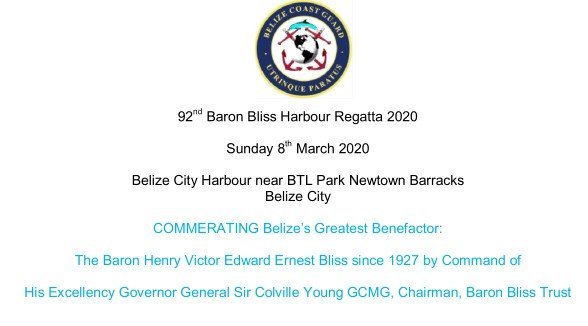 The Baron Bliss Harbour Regatta Committee (BBHRC, announces the 92nd Regatta to be held in the Belize City Harbour seaward of the BTL Park on New Town Barracks on Sunday 8th March 2020. This regatta qualifies for national ranking as approved by National Authority.