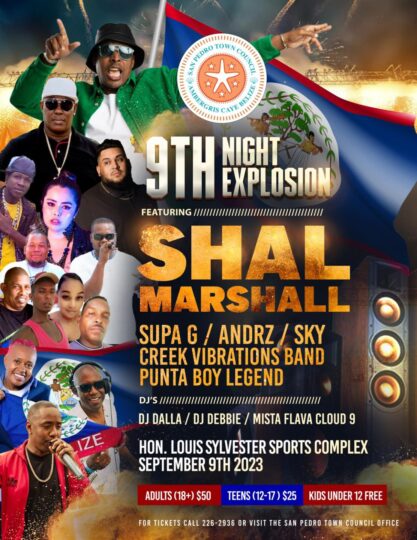 This event has passed. 9th Night Explosion September 9, 2023 @ 7:00 pm - September 10, 2023 @ 3:00 am « All Events Pinterest Twitter Facebook Pinterest Twitter Facebook Add to calendar Google Calendar iCalendar Outlook 365 Outlook Live Details Start: September 9, 2023 @ 7:00 pm End: September 10, 2023 @ 3:00 am Event Category: Concert Organizer San Pedro Town Council Phone 226-2198 Email sptb@btl.net View Organizer Website Venue Honorable Louis Sylvestre Stadium Angel Coral Street San Pedro Town, Belize District 501 Belize + Google Map Event Navigation « Living Legend Series – Gilharry 7 Band 50th Anniversary Concert St. George’s Caye Daye Ceremony and Uniform Parade – San Pedro Town » Read our previous issue Yes, we've been there, done that, and even gone back for more in some cases! Read our past issues and see why we can't get enough of My Beautiful Belize. January (PDF)