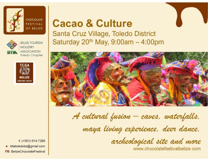 This event has passed. Chocolate Festival of Belize May 19, 2023 - May 20, 2023 « All Events Pinterest Twitter Facebook Pinterest Twitter Facebook Add to calendar Google Calendar iCalendar Outlook 365 Outlook Live Details Start: May 19, 2023 End: May 20, 2023 Event Categories: Cultural, Entertainment, Festivals Event Tags:Chocolate Festival of Belize Website: https://chocolatefestivalbelize.com/ Organizer Chocolate Festival of Belize Phone 722-2531 Email info@chocolatefestivalofbelize.com View Organizer Website Venue Toledo District Punta Gorda Town, Toledo 501 + Google Map Phone +501-614-7299 View Venue Website Event Navigation « Women in Business Expo Hopkins Mango Street Festival » Read our previous issue Yes, we've been there, done that, and even gone back for more in some cases! Read our past issues and see why we can't get enough of My Beautiful Belize. January (PDF)