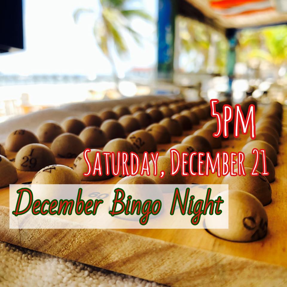 Join us for our December Bingo Night beginning at 5pm. We play 6 games at $2bz/card and one final blackout game at $5bz/card. It’s not your average bingo!