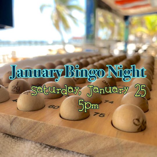 Join us for our January Bingo Night! It’s not your average bingo, we promise! We play six games at $2bz/card and one final game at $5bz/card. Free shots….music after each call….it’ll be the most fun you’ll ever have at bingo.