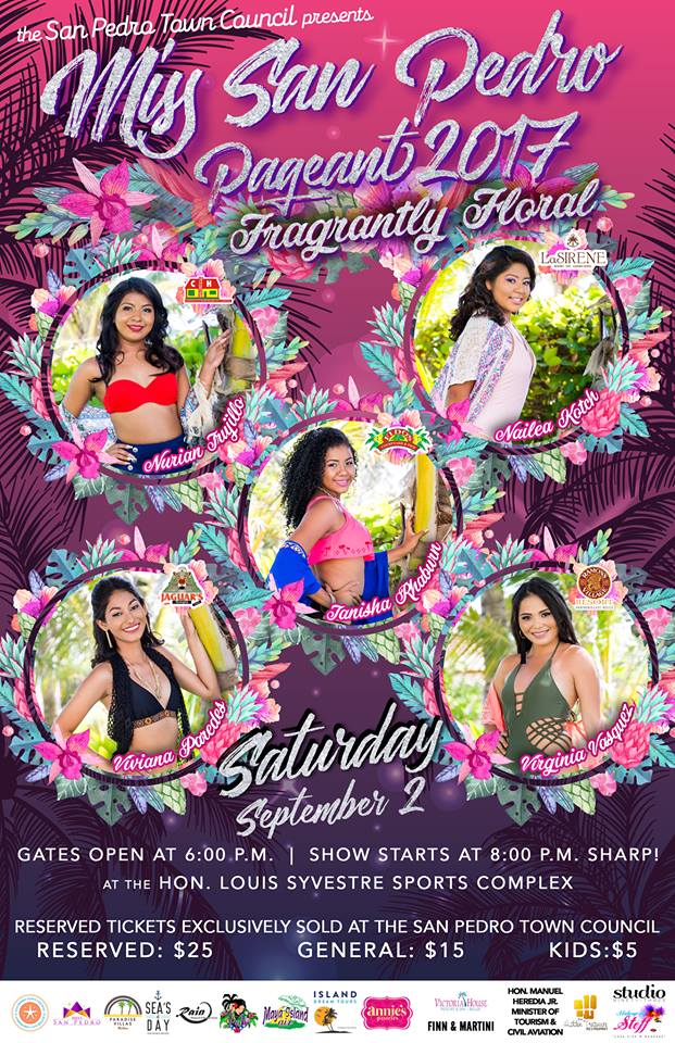 We invite everyone to the 2017 MISS SAN PEDRO PAGEANT! September 2nd at the Hon. Louis Sylvestre Sports Complex. Gates open at 6:00 p.m. and the Show begins at 8:00 p.m. SHARP!