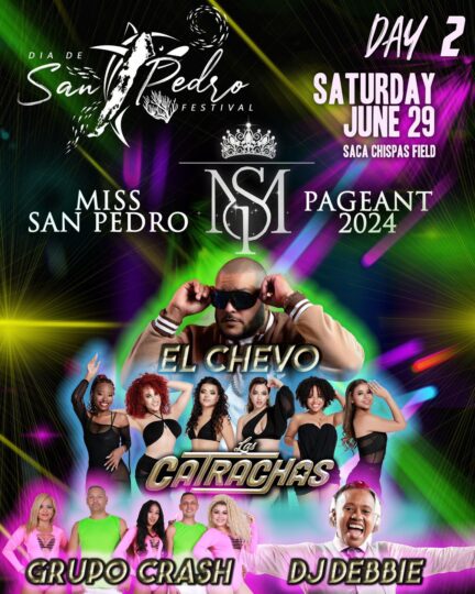 This event has passed. Miss San Pedro Pageant June 29, 2024 @ 7:00 pm - 11:30 pm « All Events Pinterest Twitter Facebook Pinterest Twitter Facebook Add to calendar Google Calendar iCalendar Outlook 365 Outlook Live Details Date: June 29, 2024 Time: 7:00 pm - 11:30 pm Event Category: Pageants Organizer San Pedro Town Council Phone 226-2198 Email sptb@btl.net View Organizer Website Venue Honorable Louis Sylvestre Stadium Angel Coral Street San Pedro Town, Belize District 501 Belize + Google Map Event Navigation « Dia de San Pedro San Pedro Lobster Festival » Read our previous issue Yes, we've been there, done that, and even gone back for more in some cases! Read our past issues and see why we can't get enough of My Beautiful Belize. January (PDF)