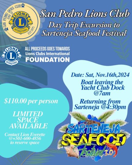 This event has passed. San Pedro Lions Club Day Trip to Sarteneja Seafood Festival November 16, 2024 @ 7:00 am - 4:30 pm | BZD110 « All Events Pinterest Twitter Facebook Pinterest Twitter Facebook Add to calendar Google Calendar iCalendar Outlook 365 Outlook Live Details Date: November 16, 2024 Time: 7:00 am - 4:30 pm Cost: BZD110 Event Navigation « Battle of the Drums Food & Fete and Garifuna Song Competition Awards & Concert 19th Annual BATTLE OF THE DRUMS 2024 » Read our previous issue Yes, we've been there, done that, and even gone back for more in some cases! Read our past issues and see why we can't get enough of My Beautiful Belize. January (PDF)