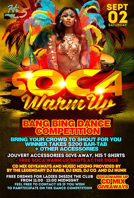 This September 2nd be sure to reach out inside Hi5 Pub & Night Club as we start off September with some called”#Soca Warm Up” with DJ CQ all the way from Belize City alongside DJ Rabb and DJ Éris Ramirez. Lots of giveaways, and surprises! Win #Jouvert Packages and more!