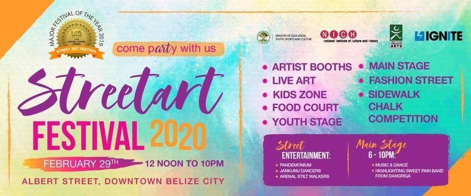 Come pARTy with us! The 10th annual Street Art Festival…Saturday, February 29th 12noon to 10pm. Albert Street, Downtown Belize City