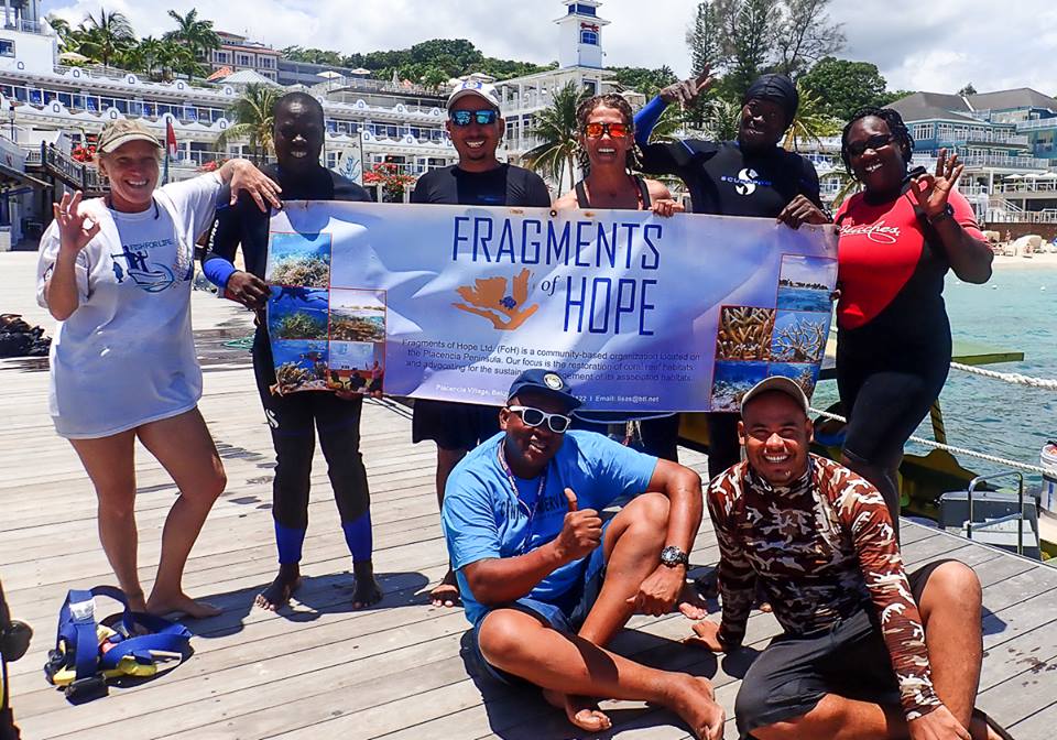 The cool people at Fragments of Hope (FoH) were part of a reciprocal exchange with Oracabessa Bay Fish Sanctuary in Jamaica in early May, 2018. The exchange was made possible with a GEF SGP grant, inspired by a request for assistance with a faster coral out-planting technique.