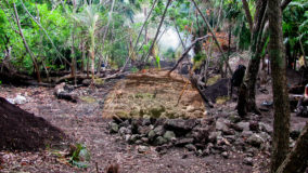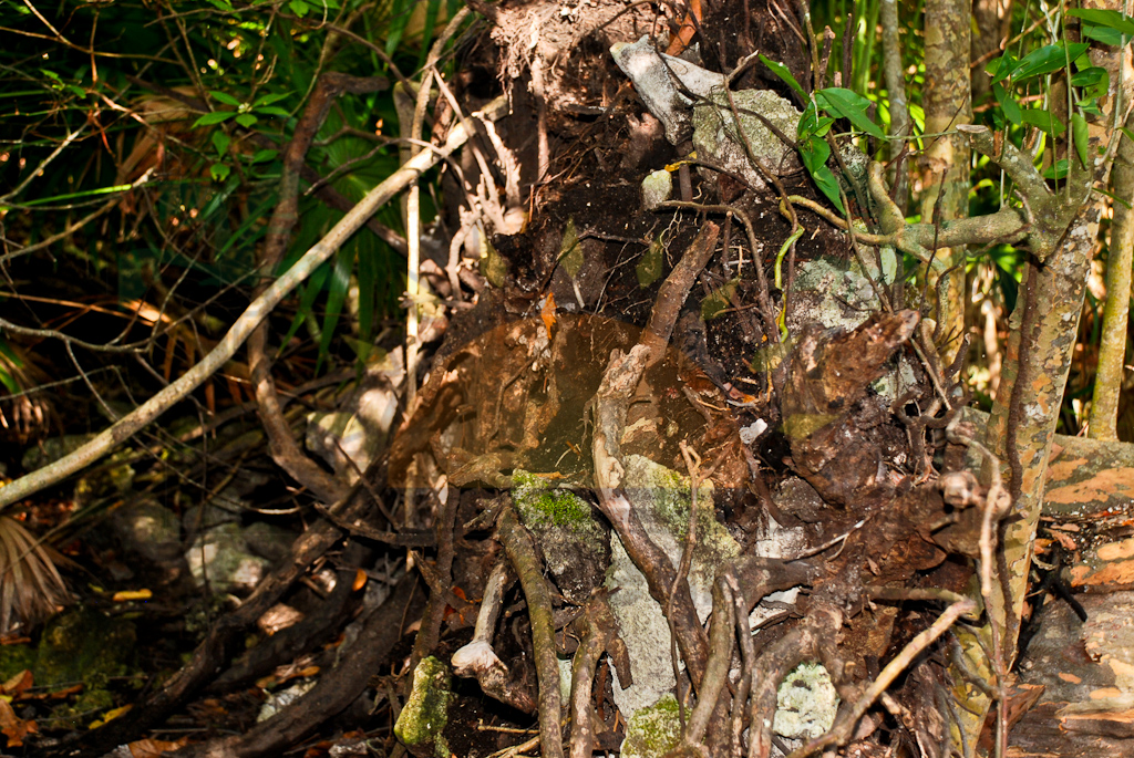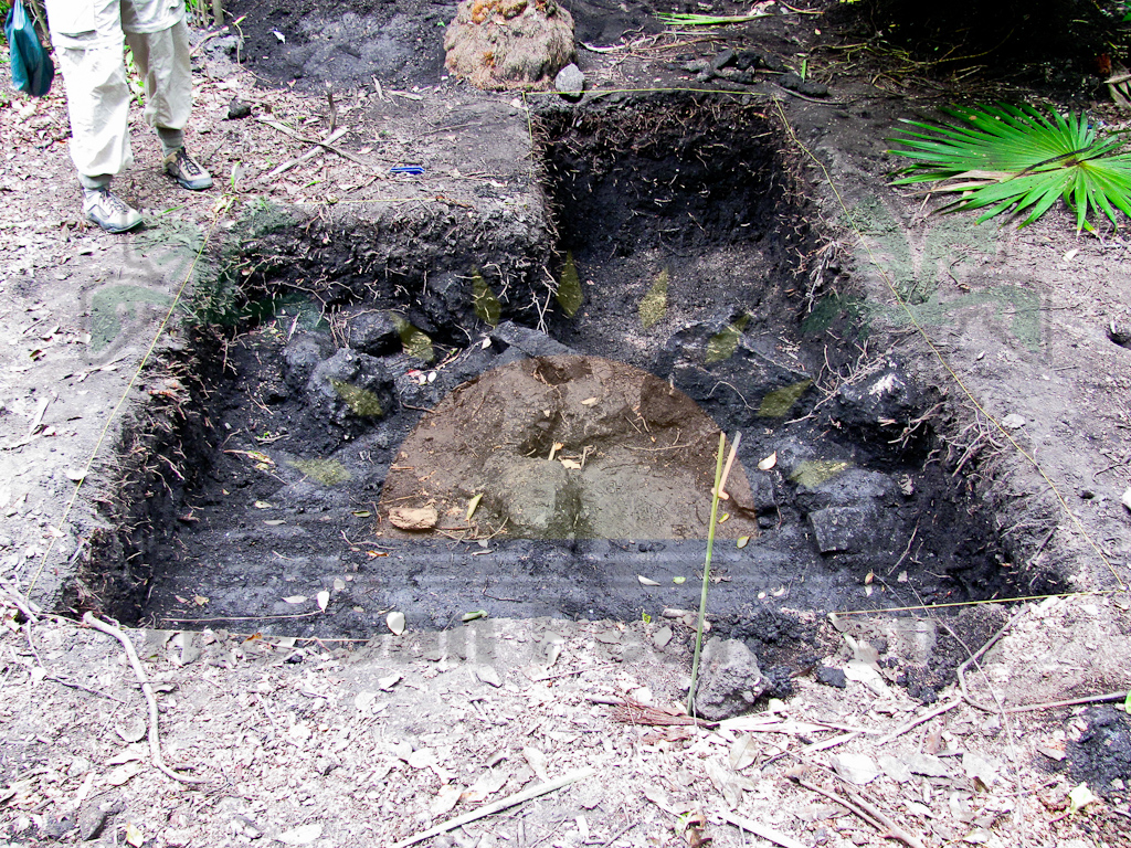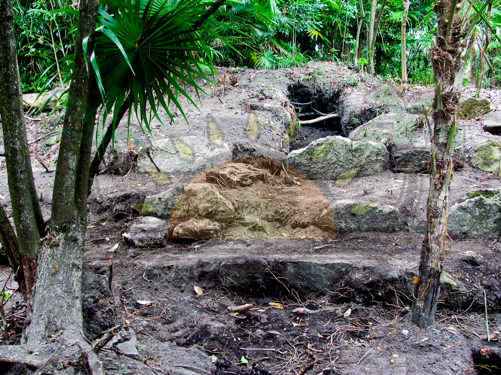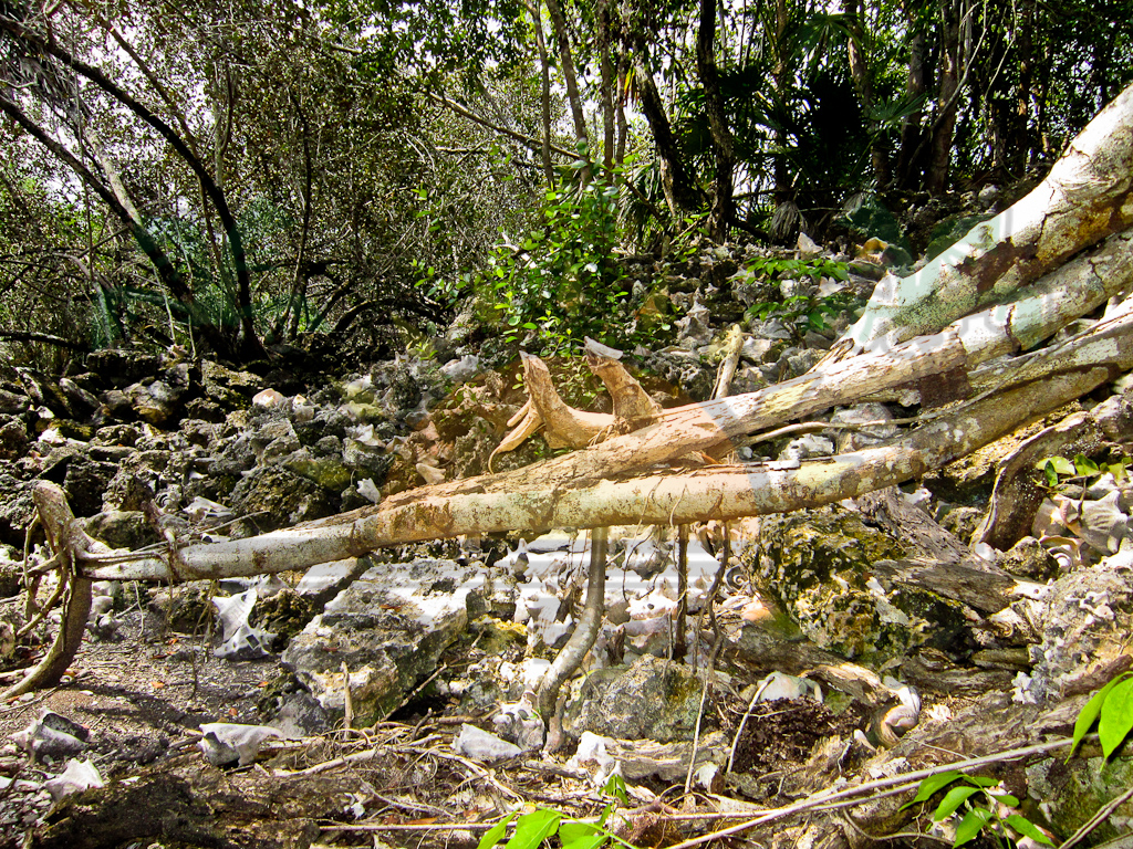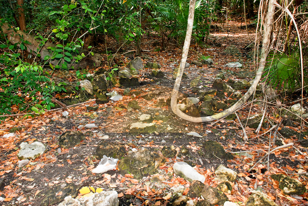Once you reach solid ground, jet black dirt and towering vegetation welcomes you to the site. The trees at the site include poison wood white mangrove, gumbo limbo, palmettos, cabbage palms, vines and tall grasses. There are also scattered coconut palm trees over the entire area. The mounds at Marco Gonzalez are generally between five to ten feet tall.