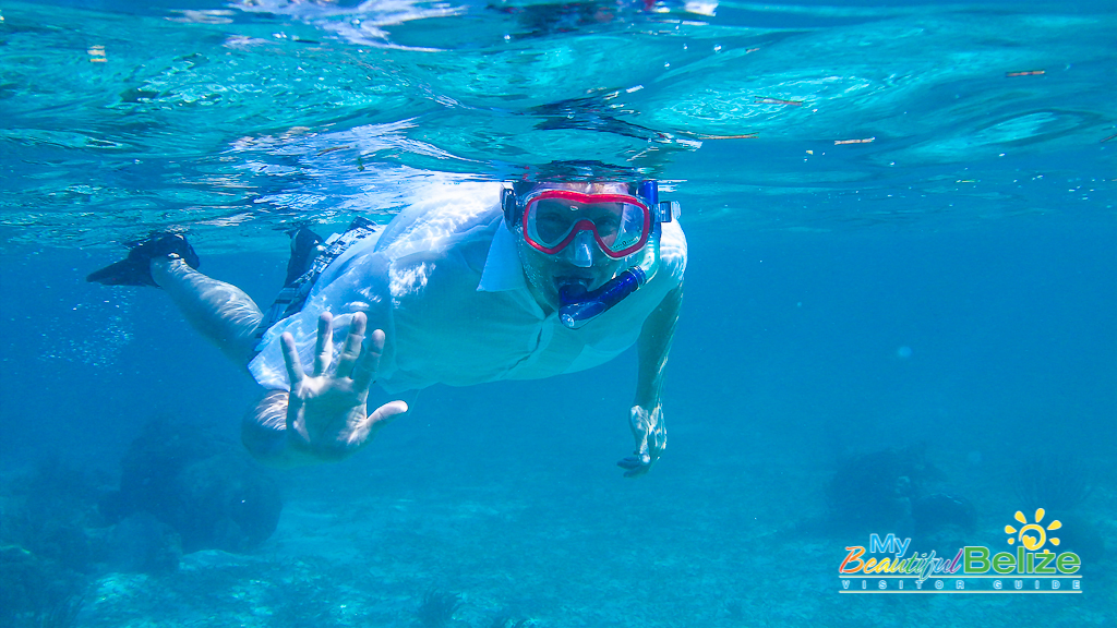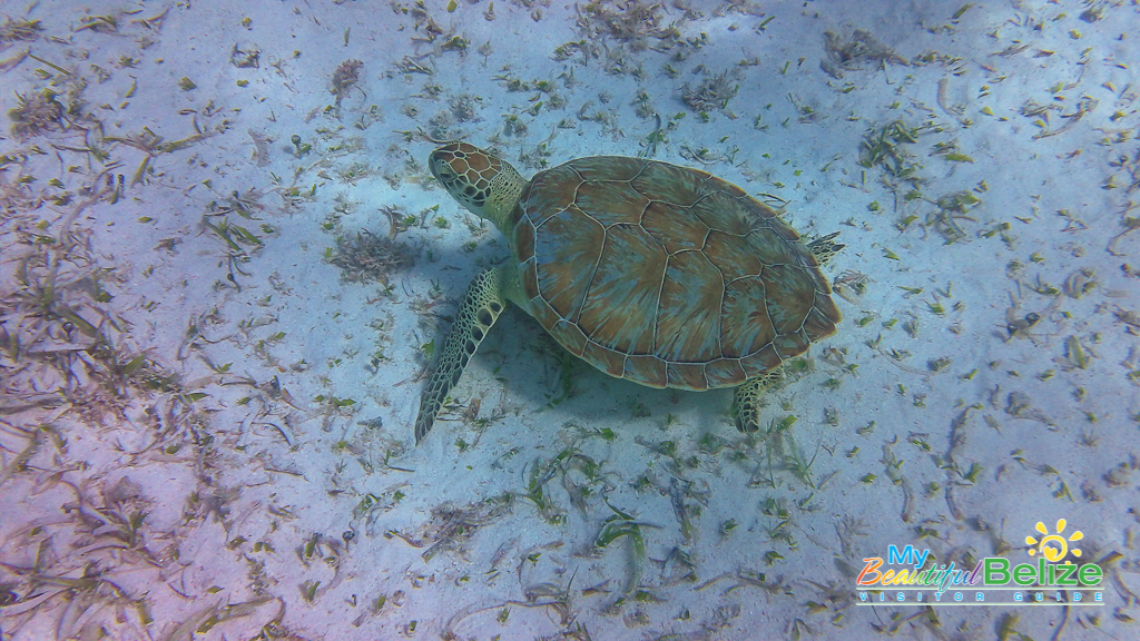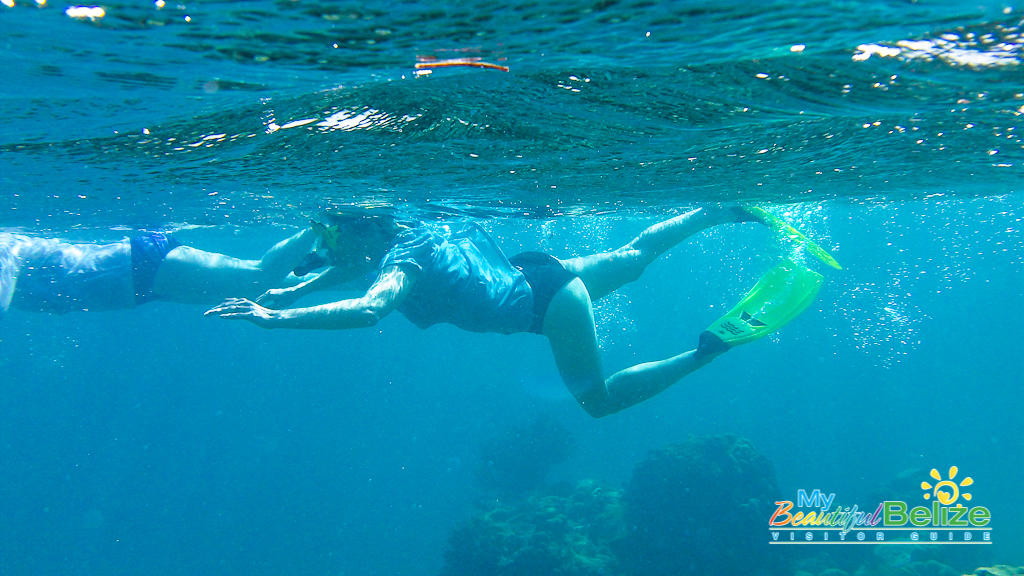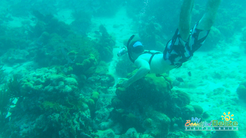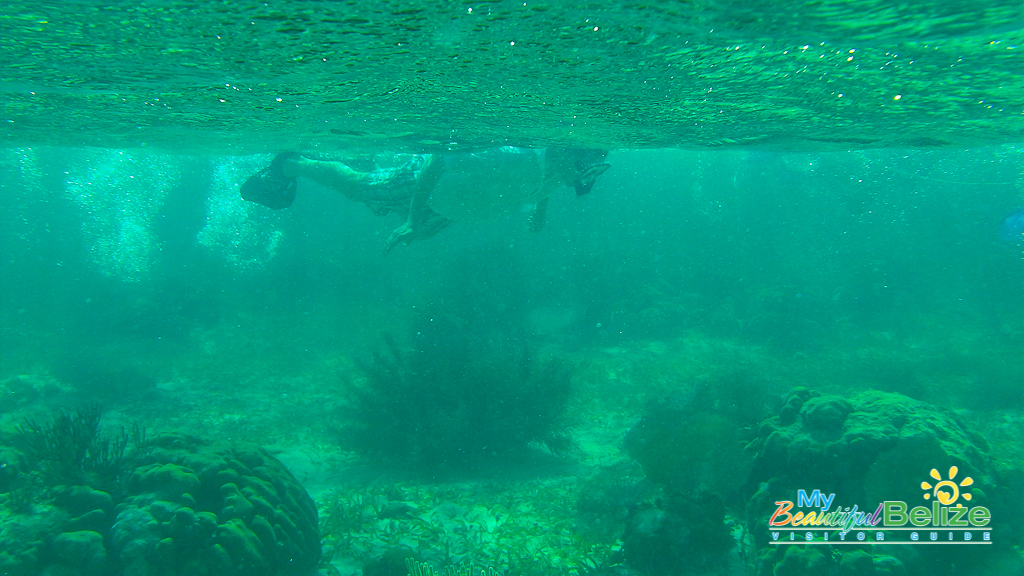 During our snorkel trip to Hol Chan with the Belize Diving Adventures crew, we were given a little history about the area and were properly informed about safety before entering the clear, warm Caribbean water. Everette’s brother Darrel lead the group, offering life jackets to those who wanted them and always towing a life ring while in the water, just in case someone wanted to “tag” along or take a break from swimming. Within minutes we were treading water with turtles and Darrel was quick to spot sea creatures that the untrained eye might have missed, a green moray eel residing within the coral or a yellow stingray, camouflaged the color of sand. The exhilarating tour took close to an hour and not one moment of that time was spent looking at anything but underwater magnificence.