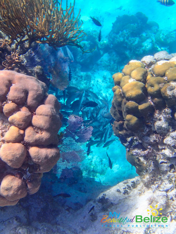 First stop: Hol Chan Marine Reserve. I have been here many times, yet its beauty always astounds me. After a short briefing, my snorkel group of four plunged into the water and we began to make our way across the coral beds.