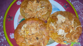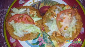 Knead masa with 2 tbsp salt and 1 recado cube diluted in a small amount of water. Once masa is properly kneaded, divide into balls of about two inches in diameter. Use a tortilla press to flatten into rounds, then fry in about two inches of hot oil. Fry until golden (do not let it get too crispy & tough), then drain on paper towels.