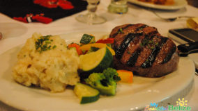 But what awaits me? Two beautifully grilled rounds of Ribeye steak, with the classic char marks that just beg you to dig in. Cooked to a medium rare, the steak is perfect for a meat-lover. The marinade has penetrated and each bite is flavorful, but the meat is what shines through – carnivores rejoice! The smashed potatoes and vegetable medley are the right accompaniments to the juicy steaks, letting them shine and offering bites of comfort in between each bite of beef.