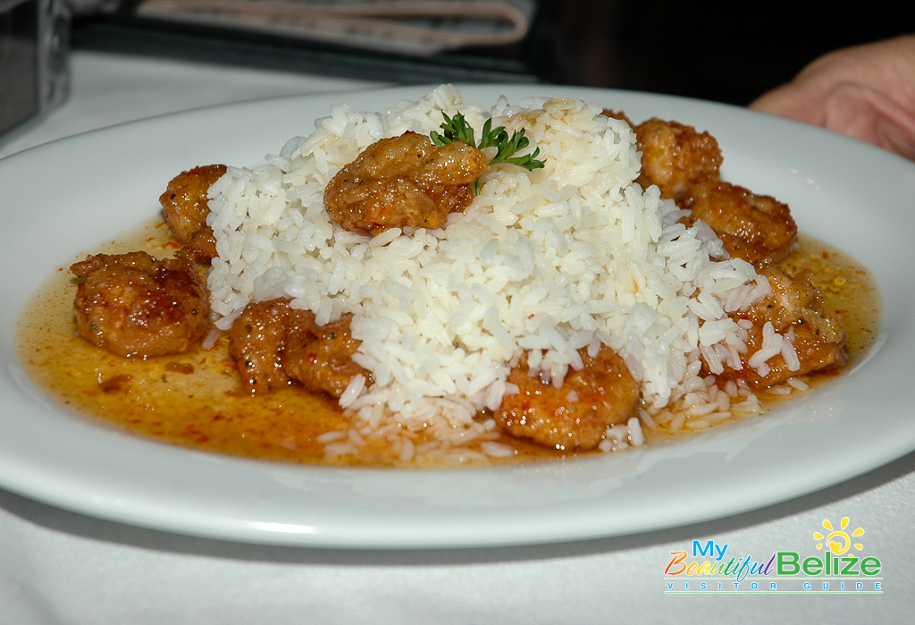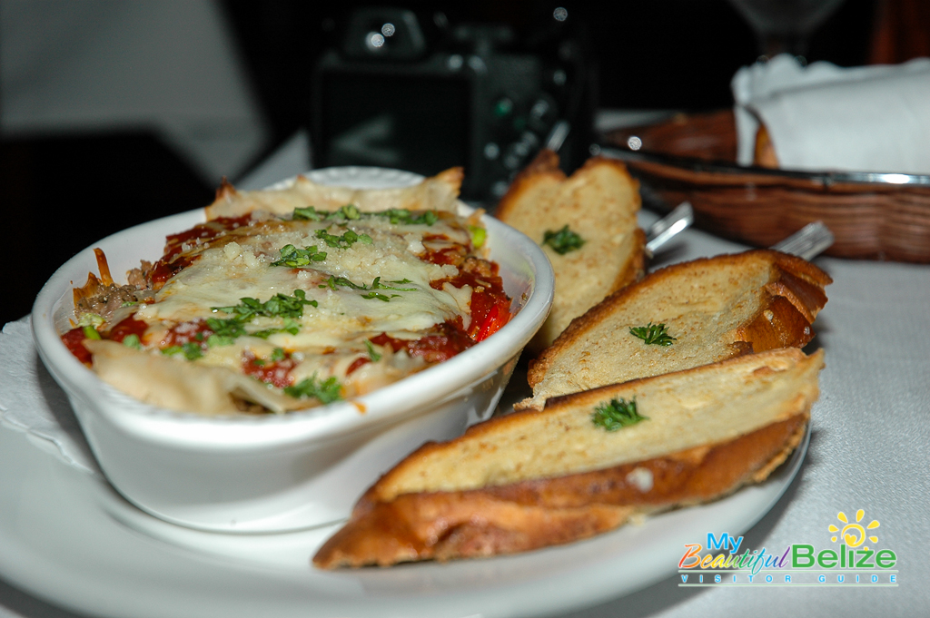 Three main dishes arrive as we’re polishing off the appetizers, our taste buds quivering in anticipation of the culinary delights that await us. A beautiful Lasagna Boat, tempting Spicy Shrimp in sweet-hot sauce and two glorious hunks of red meat (Ribeyes) grace our table. Where to begin?