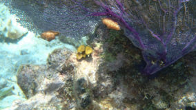 fish are necessary in maintaining Flamingo Tongue populations. When these predators are over-fished, snail density can increase, resulting in extensive grazing damage. Natural predators include Hogfish, Pufferfish and the Caribbean Spiny Lobster.