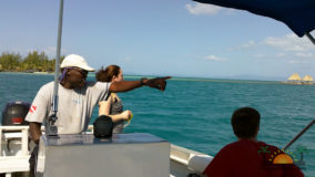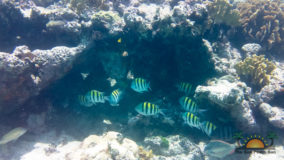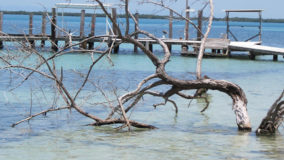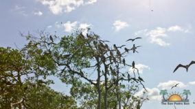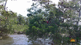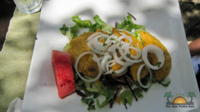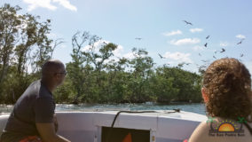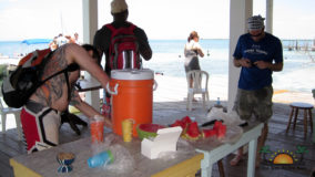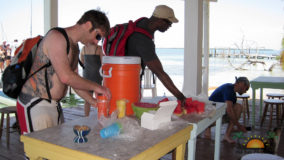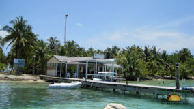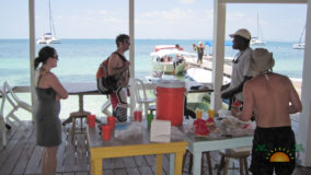 Hamanasi is as an adventure and dive resort offering a wide variety of guest activities. As a snorkeling addict I couldn’t wait to see what the waters have to offer so we sign up for a half-day trip with Captain John and first mate Terrill. Departing at 8AM we head out to the reef some 35 minutes away. John points out Coco Plum Caye which is oddly thick with pine trees. John explains that after a devastating hurricane the mangrove trees were wiped out and residents replanted pine trees, a bad idea in the long run as they are not suited to the environment and do not prevent erosion like the mangroves do, it is a strange sight to see a forest of pine trees towering on a tropical island! Along the way we also boat close to Bird Island, where hundreds of frigate and brown boobies roost. Fluffy white baby birds poke out of cluttered nests while the sky is full of soaring frigates, a super fun sight to see. Our first stop we snorkel in deep waters teeming with large tarpon and permit fish, it was a new experience for me and a tad unnerving swimming with fish that are almost as big as me! The waters grow shallower as we drift the area and the coral formations are busy with colorful tropical fish. Next stop is Tobacco Caye where we disembark for a snack of watermelon, cookies and juice while exploring the quintessential Caribbean island…it is now on my MUST STAY list for future travels! Rejuvenated from our tasty treats its’ back into the crystal clear water where we drift-snorkel the channel at Tobacco Caye. John is quick to spot several lobster along the way, and although it’s not lobster season he still takes the opportunity to give us a closer look at this tasty crustacean. Wishing we could devour the creature, we settle for imaging how delicious he would taste on the grill smothered in butter and garlic! After a good hour in the water it is time to head back to Hamanasi where we are eager to have lunch.