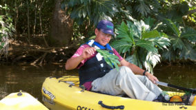 After a satisfying lunch, next on our agenda is kayaking the Sittee River. Our guide Emiliano meets us at the reception area and we load into a van where we travel a short distance to our departure point. With plenty of help getting into our wobbly kayak, Emiliano leads us into a jungle scene straight from Jurassic Park, sans the dinosaurs of course. The quite waterway leads us through thick jungle where our guide points out medicinal plants while spotting birds and iguanas basking in the sunny treetops. The primal sights and sounds are mesmerizing, transporting me back to a time where man was simply a part of the wild environment. After a couple hours of traversing the river we end our tour at Curve Marina where our van awaits to transport us back to the resort. Properly pooped out after a busy day of exploring we take full advantage of the Jacuzzi as soon as we return, soaking our tired but happy bones while sipping on cold Belikin beers….ahhh this is the life!