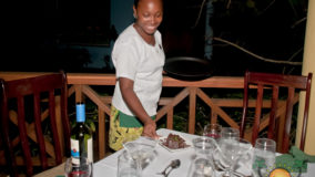 During our two-night stay we indulge in delightful meals prepared with the best in local ingredients. Breakfast in an open buffet offering a variety of fresh fruits, eggs, bacon or sausage, cereals, breads, juices and coffee or tea. For lunch we enjoy delicious salads, chicken wraps, tasty wings and burritos. Dinner is an unforgettable treat where we devoured amazing seafood chowder with a hint of coconut, veggie stuffed grouper fillets with caramelized plantains and a dessert of decadent chocolate cake with coconut ice cream. Of course their exceptional bar served up refreshing tropical cocktails and their wine selection offered the perfect complements to whatever meal you might choose to have. With the village of Hopkins nearby, one night we dine out at “Love on the Rocks”, a hip hot-rock grill restaurant where renowned Chef Rob Pronk has guests cooking their own meals on smoking hot lava rocks. The food was fun and delicious and we enjoyed our diner while entertained by Garifuna drummers.